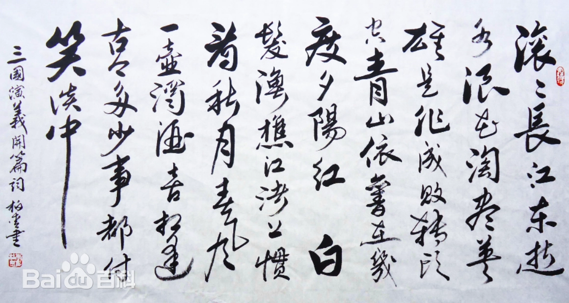 滚滚长江东逝水,浪花淘尽英雄。是非成败转头空。青山依旧在,几度夕阳红。